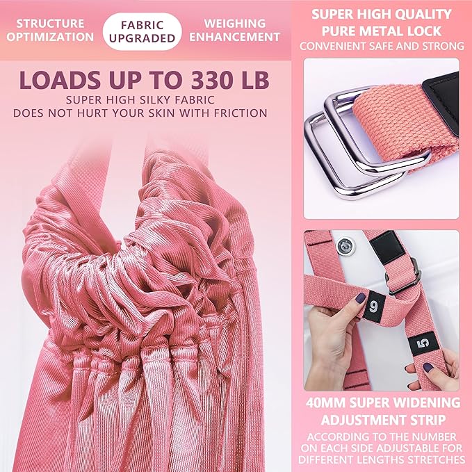 - How it feels: Before using this item, please make sure the door is solid enough Our stretching strap is softer because its non-elastic material has a tighter weaving and is thicker than others. This all makes our strap skin-friendly and much sturdier.