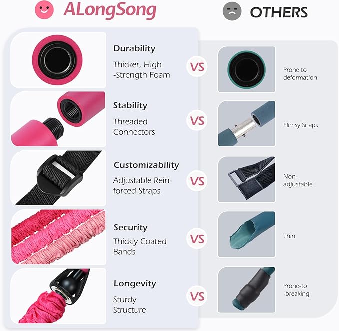- 【Easy Installation and Convenient Storage】 Easy to assemble and portable, each Pilates set comes with a compact storage bag for convenient storage, allowing you to perform quick workouts anytime, anywhere. Whether at home, in the yard, at the gym, in the office, outdoors, in a hotel, or during business trips, a single ALongSong Pilates Bar Set is all you need to burn calories at your convenience.
