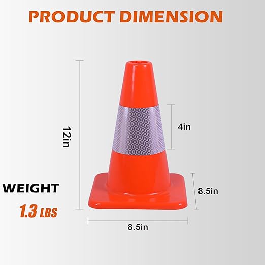 8 Pack 12" Traffic Cones with 4” Reflective Collars – Durable PVC Safety Cones for Parking, Construction, Sports & Training – High Visibility, Weather-Resistant